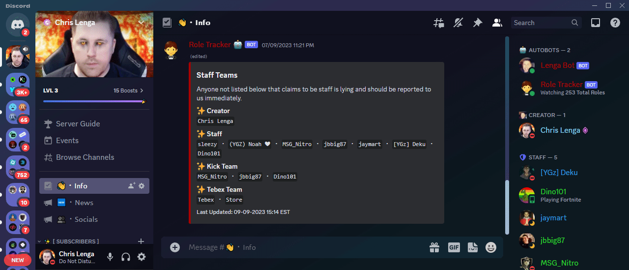 Role Tracker was an extremely popular bot that grew to several hundred servers within weeks and was originally verified by Discord. Changes to Discord's permissions and bot verification program, along with upstream Python library changes at the time, made it impractical to continue under the original architecture, and the project was shelved. Its core idea has since been reborn as RostaBot, a more evolved and secure successor that preserves the original's role-tracking strengths while addressing platform changes.